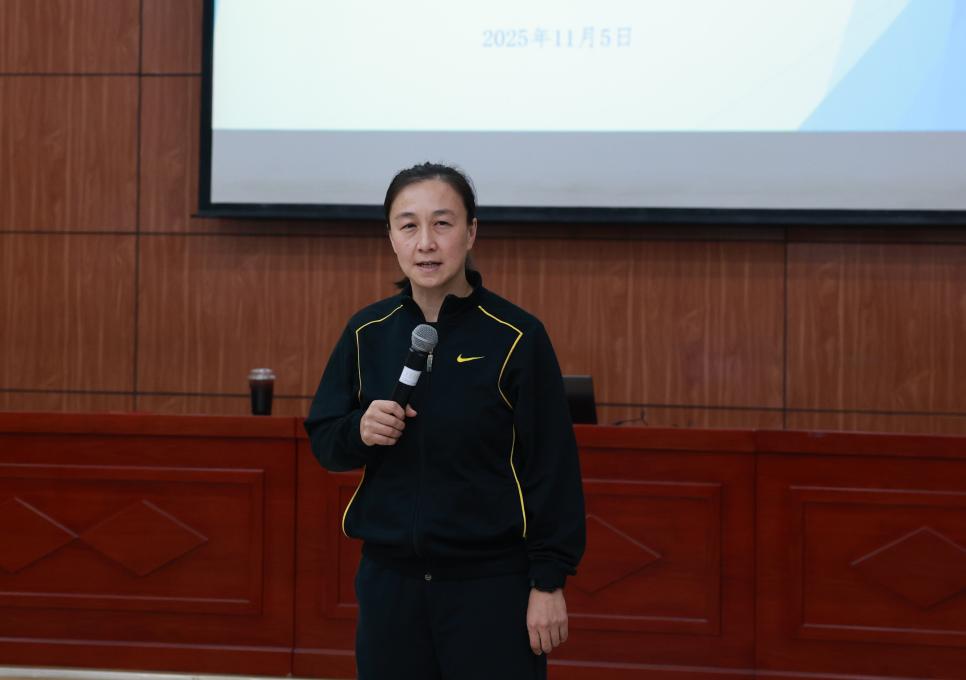 刘晓蕾结合自身世界武术冠军的专业履历,从八段锦的历史渊源、原理切入,生动阐释其融合中医经络学说的养生价值。对教师久坐办公易出现的肩颈僵硬、精力不足等问题,重点解析“两手托天理三焦”“五劳七伤往后瞧”等核心招式,强调“动作与呼吸同频”是发挥养生效果的关键,让在场教师快速理解功法背后的科学逻辑。