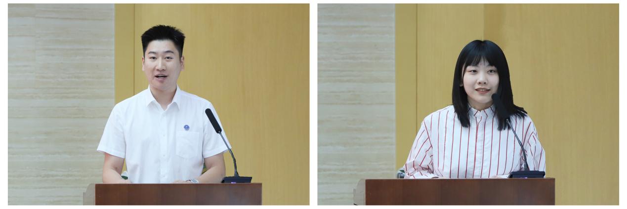 出版学院专职辅导员李司轶、设计艺术学院教师张天怡作为新入职教职工代表发言,表示将不负期望,积极进取,将个人的成长与学校的发展紧密结合起来,努力成长为教学科研管理服务等各条战线的核心骨干力量。